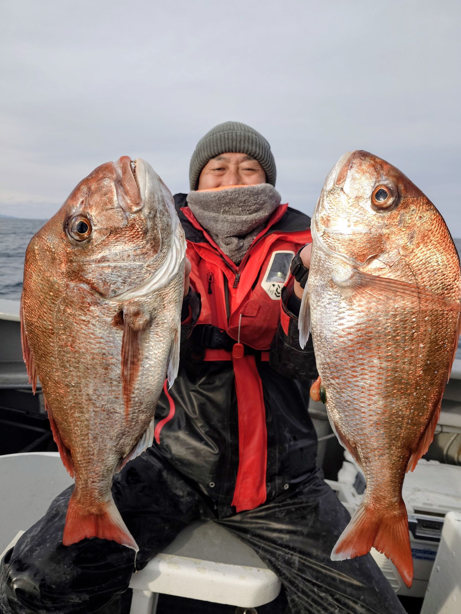 釣果には、差が出てしまいましたが終わって見れば無事に全員マダイの顔を見れました(*^^*)
